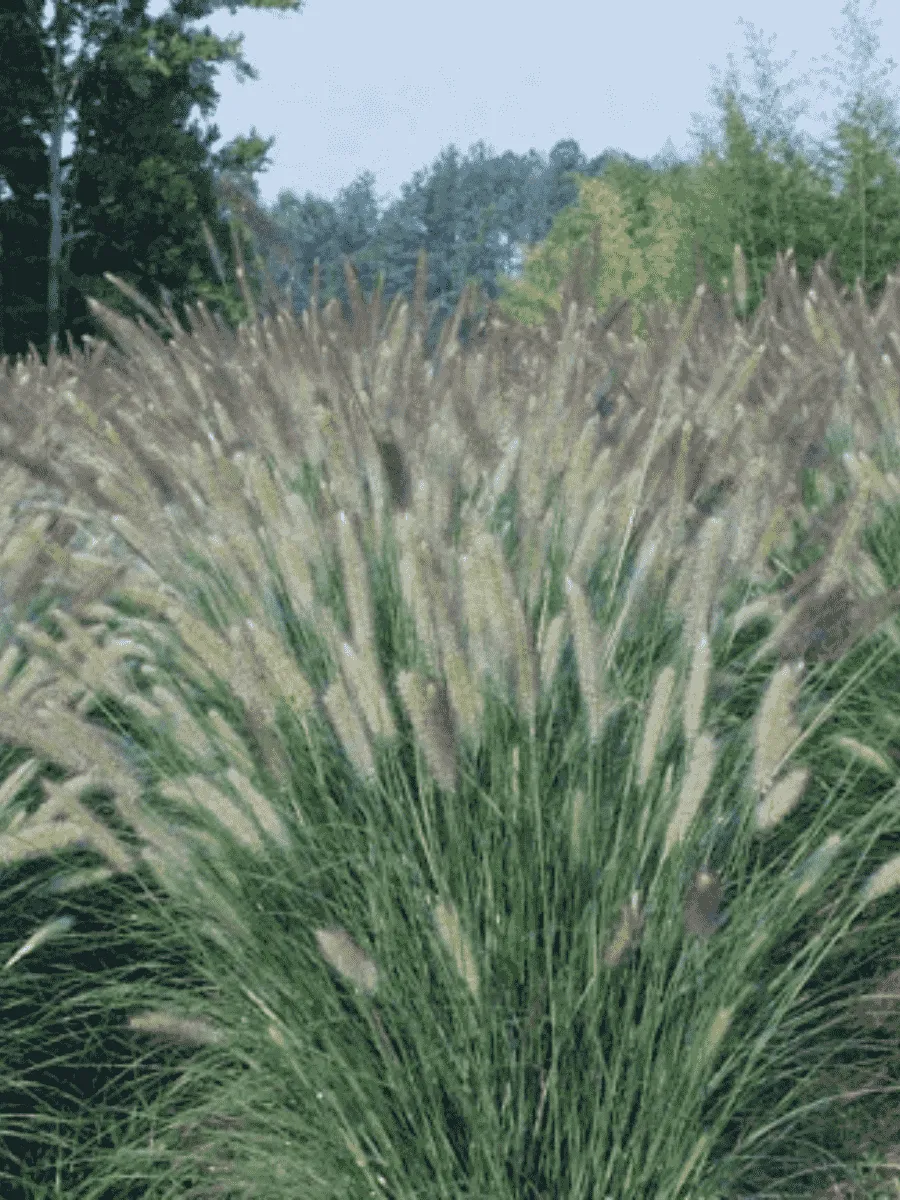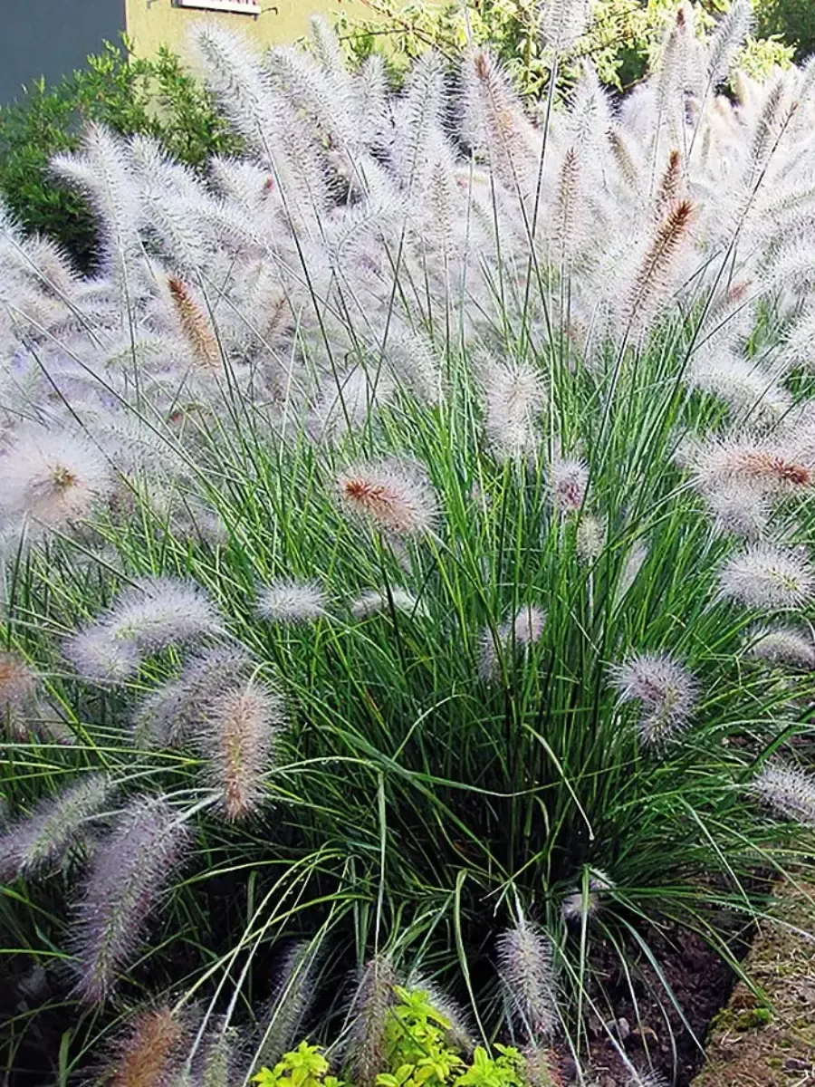 Пеннисетум лисохвостый Foxtrot — элегантная декоративная злаковая культура, покоряющая сердца садоводов своей утончённой красотой и благородством облика. Стройные прямостоячие стебли высотой до метра несут узколанцетные листья насыщенного зелёного цвета с лёгким серебристым отливом, придающим растению особую воздушность и свежесть. Листья тонкие, гладкие, слегка волнистые по краям, словно нежнейшие ленты, трепещущие на ветру. Но истинную славу пеннисетума составляют пышные метёлки соцветий, похожие на пушистые хвосты лисы, откуда и произошло название сорта. Цветёт растение летом, раскрывая густые колосовидные кисти длиной около 15–20 см, покрытые мелкими золотисто-коричневыми цветами, постепенно приобретающими бронзовый оттенок. Соцветия долго сохраняют свою привлекательность даже после увядания цветов, превращаясь в эффектные декоративные элементы осеннего сада. Растение неприхотливо, предпочитает солнечные места и хорошо дренированные почвы, быстро разрастается, формируя живописные куртины, идеально подходящие для оформления бордюров, миксбордеров и одиночных посадок.