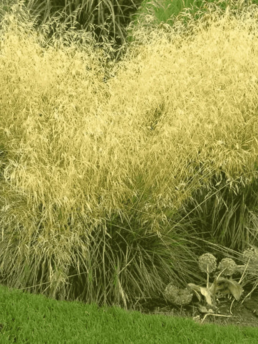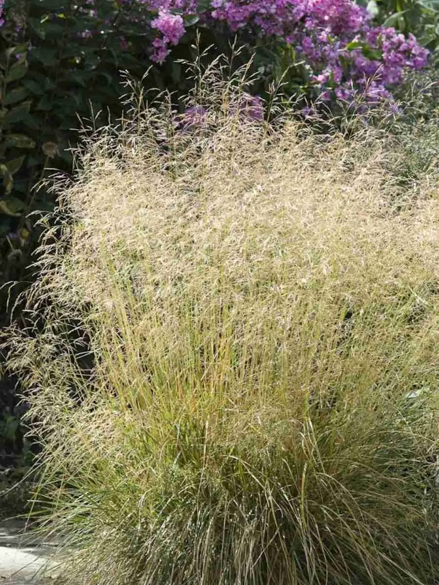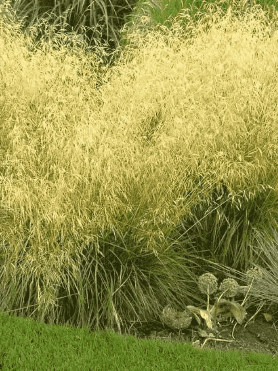 Щучка дернистая 'Gold Tau' (Deschampsia cespitosa 'Gold Tau') — изысканное декоративное растение семейства Злаки, покоряющее сердца садоводов своей утончённой красотой и элегантностью форм. Это компактная травянистая многолетняя культура высотой около 45–60 см, формирующая плотную густую куртину нежной светло-зелёной листвы, украшенной золотистыми оттенками. Листья узколинейные, тонкие, слегка волнистые, словно струящиеся ленты, придающие растению воздушность и лёгкость. Цветёт щучка в июне-июле, покрываясь многочисленными мелкими колосками, собранными в рыхлые метёлки серебристо-белого цвета, переливающиеся на солнце подобно драгоценному жемчугу. Растение предпочитает влажные плодородные почвы, тенистые уголки сада или полутень, где оно раскрывается во всей красе, создавая живописные акценты среди зелёных насаждений. Благодаря своему неприхотливому характеру и способности сохранять привлекательность до поздней осени, щучка 'Gold Tau' становится незаменимым элементом ландшафтного дизайна, привнося гармонию и очарование в любой садовый ансамбль.