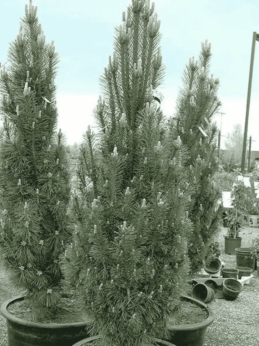 Сосна чёрная сорта *Komet* представляет собой стройную пирамидальную красавицу, достигающую высоты до пяти метров и обладающую густой плотной кроной, словно сотканной из тёмно-зелёных игл, блестящих и слегка искрящихся на солнце. Её ветви расположены горизонтально, создавая впечатление аккуратности и благородства, а короткие хвоинки длиной около двух сантиметров образуют густые пучки, придающие дереву особую декоративность даже зимой. Растёт медленно, ежегодно прибавляя всего несколько десятков сантиметров, предпочитая солнечные места и плодородные почвы, однако легко адаптируется к различным условиям среды благодаря своей выносливости и устойчивости к неблагоприятным факторам окружающей среды. Цветение сосны происходит весной, когда среди зелёных ветвей появляются небольшие шишечки, постепенно превращающиеся в зрелые коричневые шишки, украшающие дерево и подчёркивающие его природную красоту. Этот сорт идеально подходит для одиночных посадок, живых изгородей и ландшафтных композиций, привнося в сад атмосферу гармонии и величия природы.
