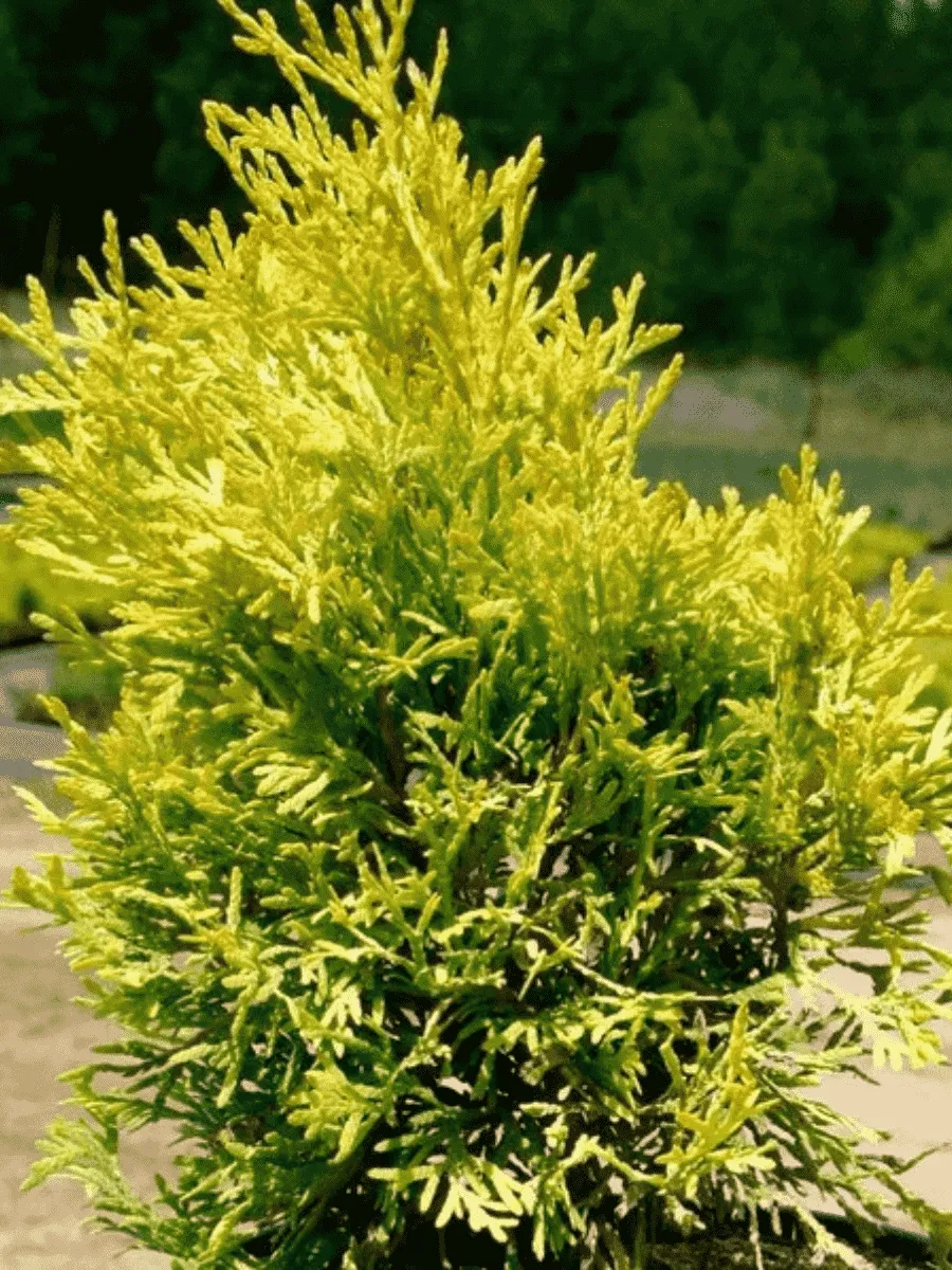 Туя западная Golden Anne представляет собой компактную пирамидальную крону, украшенную золотисто-жёлтой хвоей, переливающейся солнечными оттенками от лимонной свежести весной до насыщенного янтарного блеска осенью. Её игловидные листья плотно прижаты друг к другу, создавая мягкую бархатистость поверхности кроны, словно нежнейший мех пушистого зверька. Растёт медленно, ежегодно прибавляя лишь несколько сантиметров высоты, достигая зрелости через десятилетия и приобретая благородство форм и утончённую элегантность силуэта. Цветение практически незаметно, поскольку мелкие шишечки скрыты среди густой листвы, уступая первенство декоративности самой хвое, сияющей ярким светом даже в пасмурные дни. Благодаря своей неприхотливости и устойчивости к городским условиям, она широко используется в ландшафтном дизайне парков и садов, привнося солнечные акценты в любую композицию и радуя глаз круглый год своим неизменным очарованием.