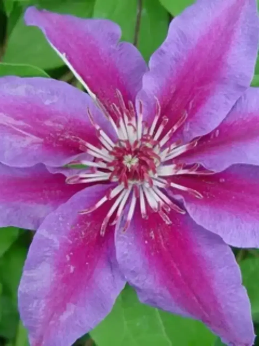 Клематис гибридный Fireworks — роскошная лиана с элегантной архитектурой стеблей и пышным каскадом цветов, покоряющих своей утончённой красотой. Листья перистые, рассечённые на несколько пар ланцетных листочков, покрытых нежным пушком, придающим растению лёгкую дымчатость. Цветки крупные, диаметром до 15 см, распускаются густым облаком, словно фейерверк, взрываясь яркими оттенками от насыщенно-розового до пурпурного с серебристо-белыми штрихами по краям лепестков. Бутоны раскрываются постепенно, создавая эффект непрерывности цветения с июня по сентябрь. Стебли гибкие, цепляются усиками за опоры, легко взбираясь вверх на высоту до трёх метров, украшая беседки, арки и стены домов живописными зелёными гирляндами. Растёт быстро, предпочитает солнечные места и плодородную почву, устойчив к болезням и зимостоек даже в суровых условиях средней полосы России.