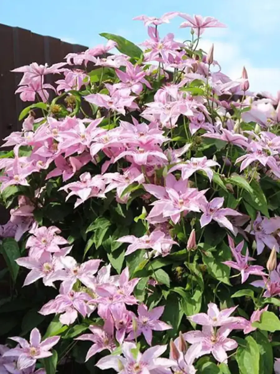 Клематис гибридный Hagley Hybrid очаровывает своей утончённой красотой и элегантностью форм. Это мощная лиана с гибкими побегами, достигающая высоты до трёх метров, украшенная крупными тёмно-зелёными листьями сложной формы, состоящими из нескольких овальных листочков с зубчатыми краями. Цветки крупные, диаметром около десяти сантиметров, распускаются обильно и продолжительно, начиная с июня и заканчивая сентябрём. Лепестков пять-шесть, широкие, слегка волнистые, нежно-розового оттенка с серебристым отливом, придающим цветкам особую воздушность и лёгкость. Сердцевина цветка подчёркнута контрастной жёлтой серединкой, привлекающей внимание насекомых-опылителей. Растёт быстро, легко адаптируется к различным условиям, предпочитая солнечные места и плодородную почву, широко используется в вертикальном озеленении садов и парков, создавая живописные композиции и радуя глаз нежнейшими оттенками своего цветения.