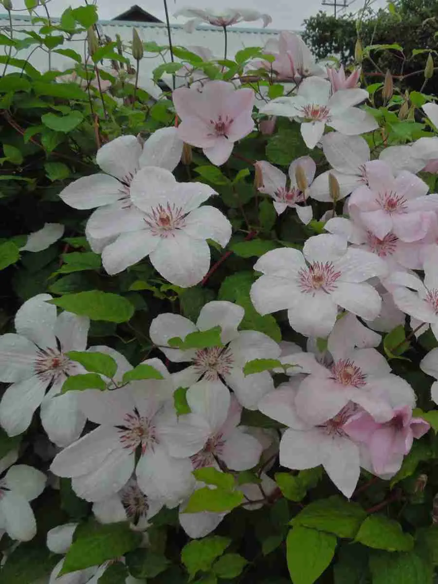 Клематис гибридный *Jan Pawel II* пленяет взор роскошью крупных цветков насыщенно-розового оттенка, украшенных нежной кремово-белой сердцевиной и золотистыми тычинками, словно драгоценная брошь среди зелени сада. Листья перистые, рассечённые на несколько овальных листочков, покрыты мягким пушком, придающим растению бархатистый шарм. Цветки распускаются обильно, начиная с июня и продолжаясь до глубокой осени, создавая живописную картину пышного цветения. Стебли гибкие, цепляющиеся усиками, позволяют клематису легко взбираться вверх, покрывая опоры густым ковром цветов. Растёт быстро, предпочитает солнечные места и плодородные почвы, демонстрируя свою красоту во всей полноте там, где получает достаточно света и заботы садовода.