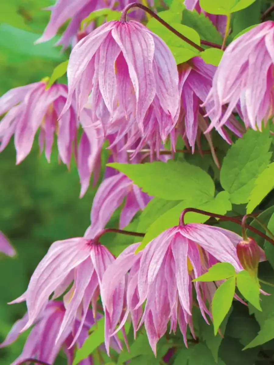 Клематис Pink Dream очаровывает нежностью своего цветения и утончённостью облика. Это элегантная лиана с гибкими побегами, достигающая высоты до трёх метров, легко взбирающаяся по шпалерам и решёткам благодаря тонким усикам-листочкам. Листья тёмно-зелёные, блестящие, рассечённые на несколько овальных долей, придают растению свежесть и декоративность даже вне периода цветения. Цветки крупные, диаметром около десяти сантиметров, распускаются в июне–августе, окрашены в изысканный розово-персиковый оттенок с лёгким серебристым отливом, создавая впечатление воздушной невесомости среди зелени. Сердцевина цветка украшена контрастной жёлтой серединкой, состоящей из многочисленных тычинок, придающих особую живописность каждому лепестку. Растение предпочитает солнечные места, плодородную почву и умеренный полив, прекрасно адаптируется к различным климатическим условиям средней полосы России, становясь украшением садов и парков, где дарит радость своим роскошным цветением долгие годы подряд.