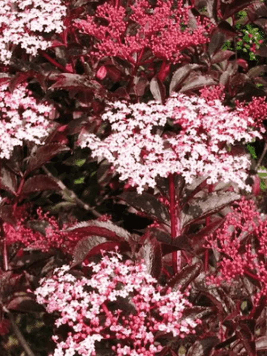 Бузина чёрная сорта *Thundercloud* представляет собой эффектную декоративную кустарниковую породу высотой до трёх метров, отличающуюся живописной раскидистой кроной и элегантностью форм. Листья крупные, пальчато-сложные, состоят из пяти-семи овальных листочков, покрытых бархатистым тёмно-пурпурным оттенком, который особенно ярко проявляется весной и летом, создавая контраст с окружающей зеленью сада. Цветки мелкие, белые, собраны в плоские щитковидные соцветия диаметром около десяти сантиметров, источают приятный аромат и привлекают насекомых-опылителей. Растёт быстро, предпочитает плодородные почвы и умеренное увлажнение, хорошо переносит обрезку и формирование кроны. Благодаря своей красоте и неприхотливости широко используется в ландшафтном дизайне для одиночных посадок, живых изгородей и групповых композиций, украшая сады и парки своим экзотическим обликом.