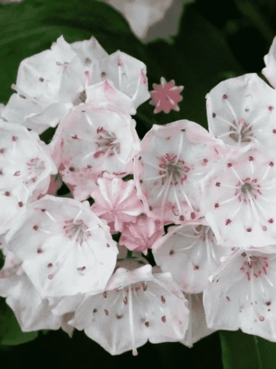 Кальмия широколистная 'Elf' (Kalmia latifolia 'Elf') — миниатюрное вечнозелёное растение семейства вересковых, покоряющее сердца садоводов своей изысканной красотой и компактностью форм. Невысокий кустик высотой всего около полуметра украшен плотными кожистыми листьями насыщенно-зелёной окраски, слегка блестящими и гладкими, словно отполированными природой до совершенства. Весной и летом кальмию украшают пышные соцветия бело-розового оттенка, состоящие из множества мелких цветков-колокольчиков, источающих тонкий аромат и привлекающих внимание своим нежным очарованием. Растёт медленно, предпочитая полутень и влажную плодородную почву, создавая живописные композиции в тенистых уголках сада, рокариях и альпинариях. Этот очаровательный представитель флоры идеально подходит для небольших участков и контейнерного озеленения, привнося атмосферу гармонии и спокойствия в окружающее пространство.