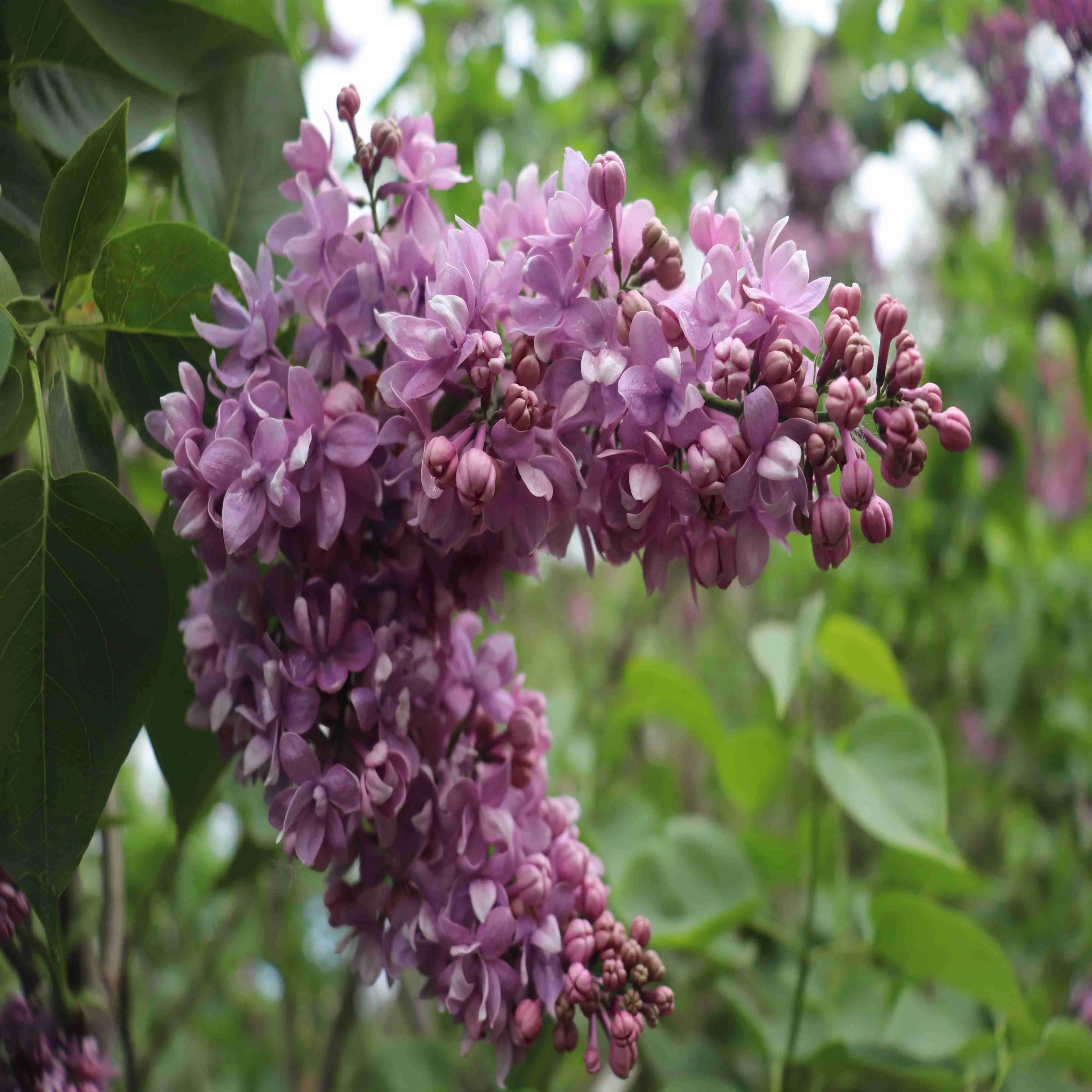 Сирень обыкновенная *Александр Блок* — роскошная садовая форма, пленяющая взор нежностью оттенков и утончённостью аромата. Высокий кустарник достигает трёх метров высоты, обладая густой кроной и стройными ветвями, покрытыми гладкой серо-коричневой корой. Листья крупные, сердцевидные, тёмно-зелёной окраски, слегка блестящие сверху и матовые снизу, придают растению благородную строгость облика. Цветёт обильно и продолжительно, раскрывая пышные соцветия-метёлки длиной до двадцати сантиметров, состоящие из множества мелких цветков нежно-фиолетового цвета с лёгким сиреневым оттенком. Бутоны распускаются постепенно, наполняя воздух тонким ароматом, который словно окутывает пространство вокруг себя лёгкой дымкой. Растение предпочитает солнечные места, хорошо растёт на плодородных почвах, устойчиво к морозам и засухе, широко используется в декоративном садоводстве благодаря своей красоте и неприхотливости.