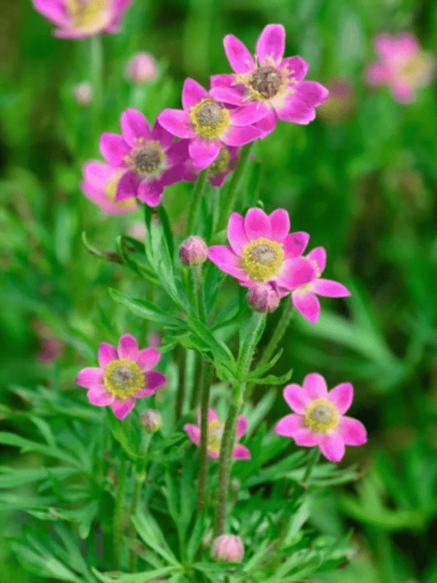 Анемона многонадрезанная сорта *Anabella Deep Rose* пленяет взор нежностью лепестков глубокого розового оттенка, словно утренняя заря после весеннего дождя. Её тонкие стебли высотой до полуметра несут крупные цветы диаметром около восьми сантиметров, раскрывающиеся навстречу солнечным лучам. Листья рассечены на узкие сегменты, создавая ажурную зелень, контрастирующую с яркими бутонами. Цветение начинается ранней весной и продолжается несколько недель, наполняя сад изысканным очарованием. Растение предпочитает полутень и влажные почвы, легко адаптируется к различным климатическим условиям, становясь украшением тенистых уголков сада и лесных опушек.