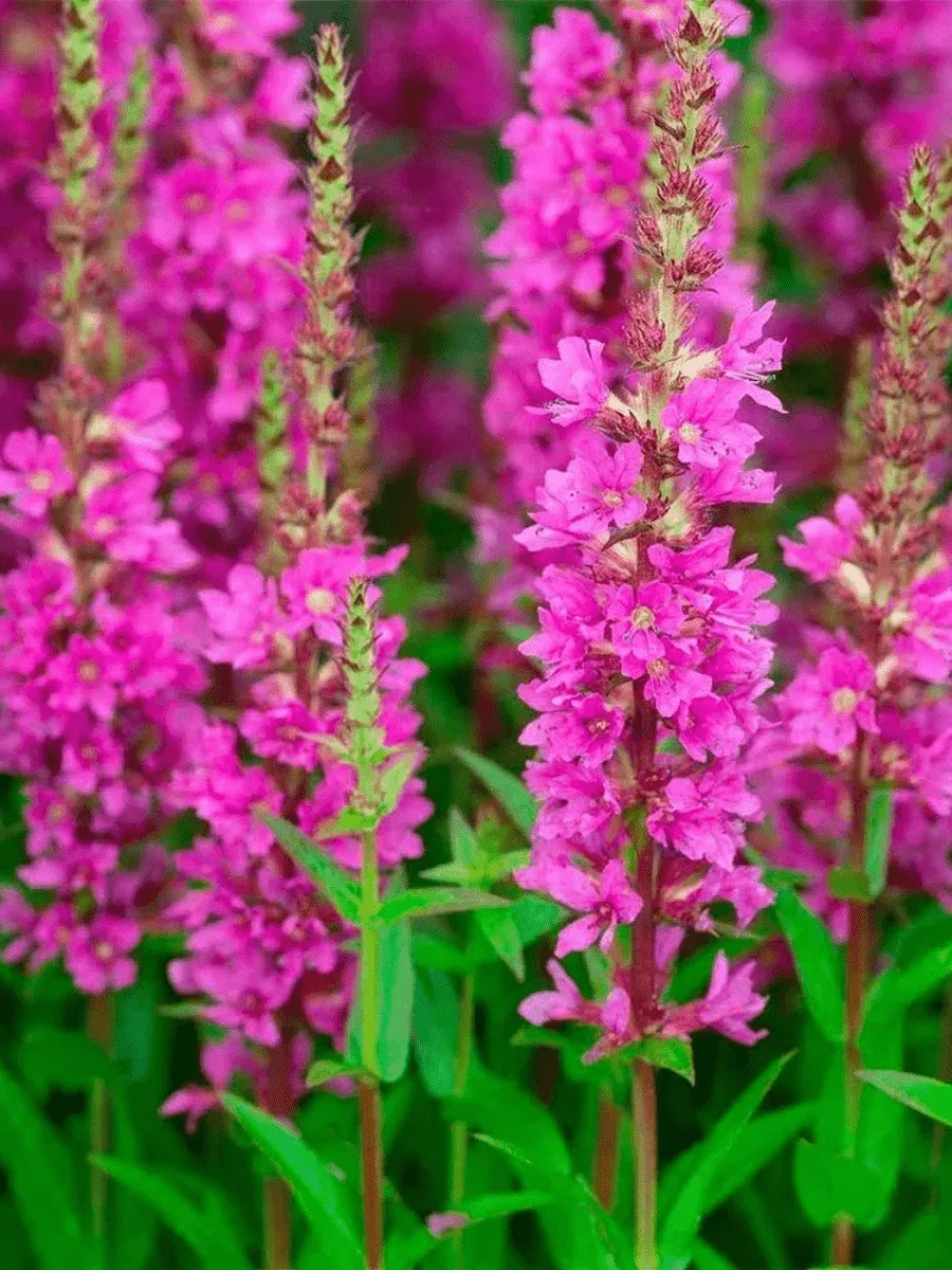 Дербенник иволистный (*Lythrum salicaria* L.) — многолетнее травянистое растение семейства дербенниковых (Lythraceae), обладающее стройной прямой осанкой и достигающее высоты от одного до двух метров. Его стебли крепки, четырёхгранные, покрыты мелкими волосками и окрашены в насыщенный зелёный оттенок с лёгким пурпурным отблеском. Листья узколинейные, очередные, тонкие и длинные, словно иглы, напоминают листья ив, отчего растение и получило своё видовое название. Цветёт обильно и продолжительно, начиная с июля и заканчивая сентябрём, покрываясь яркими розово-пурпурными соцветиями-метёлками, состоящими из множества мелких цветков с длинными тычинками, придающих растению особую декоративность и привлекательность. Предпочитает влажные места обитания, такие как берега рек, озёр, болотистые луга и сырые низины, где образует живописные заросли, украшая собой прибрежную зону и привлекая внимание своей яркой красотой и нежностью цветения.