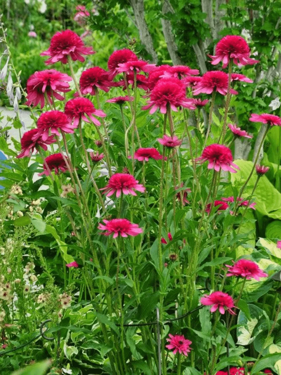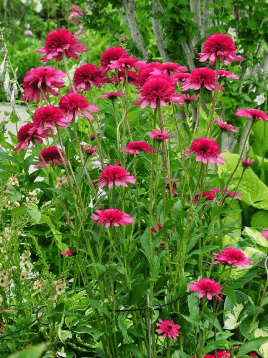 Эхинацея пурпурная сорта *Southern Belle* пленяет взор своей изысканной красотой и благородством форм. Это многолетнее травянистое растение достигает высоты от полуметра до метра, обладая крепким прямостоячим стеблем, покрытым мелкими волосками. Листья крупные, овально-ланцетной формы, слегка шероховатые на ощупь, насыщенно-зелёного цвета, придают растению особую декоративность даже вне периода цветения. Но истинную прелесть эхинацее придаёт её роскошное цветение: многочисленные соцветия-корзинки диаметром около восьми сантиметров венчают верхушки побегов, украшая сад яркими оттенками розового и фиолетово-пурпурного цветов. Серединка цветка представлена крупной конусовидной головкой, состоящей из множества мелких трубчатых цветков тёмно-коричневого оттенка, окружённых крупными лепестками язычковых цветков, словно лучиками расходящихся во все стороны. Цветение продолжается долго, начиная с середины лета и продолжаясь вплоть до первых осенних заморозков, создавая живописную картину пышности и свежести среди зелёного убранства сада. Растение предпочитает солнечные места, хорошо дренированные почвы и умеренный полив, легко адаптируется к различным климатическим условиям и широко используется в ландшафтном дизайне благодаря своему эффектному внешнему виду и целебным свойствам.