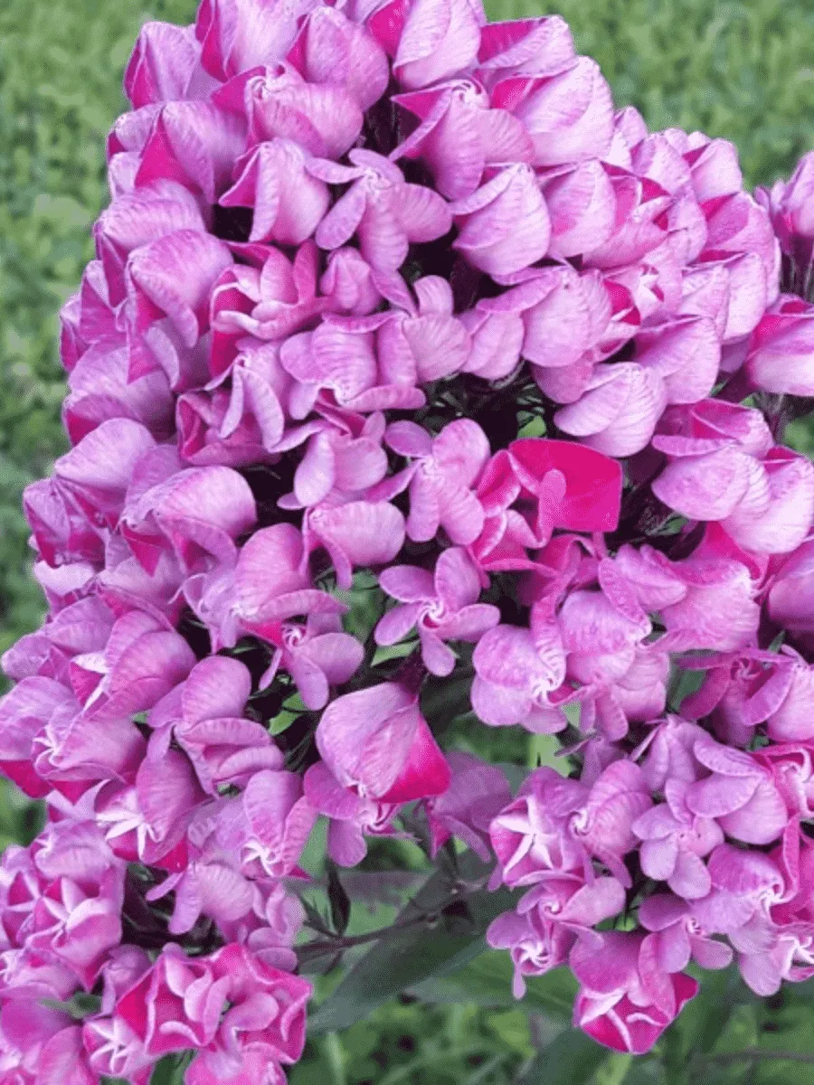 Флокс метельчатый сорта 'Бутоник' представляет собой многолетнее травянистое растение с прямостоячими крепкими стеблями высотой до одного метра, покрытыми тёмно-зелёной листвой насыщенного оттенка. Листья ланцетные, гладкие, блестящие, расположены супротивно вдоль всего стебля, создавая плотную зелёную массу. Цветки крупные, диаметром около трёх сантиметров, собраны в пышные верхушечные соцветия-метёлки, достигающие значительной величины и плотности. Окраска цветков варьируется от нежно-розового до ярко-пурпурного цвета, иногда переходящего в сиреневый оттенок, благодаря чему флокс выглядит особенно декоративно и эффектно во время цветения. Период цветения продолжительный, начинается в июне и продолжается вплоть до сентября, украшая садовые композиции яркими красками и привлекая внимание своей изысканной красотой. Растёт быстро, легко размножается делением куста и черенкованием, широко используется в ландшафтном дизайне для оформления клумб, рабаток и миксбордеров, прекрасно сочетаясь с другими растениями и подчёркивая свою неповторимую привлекательность.