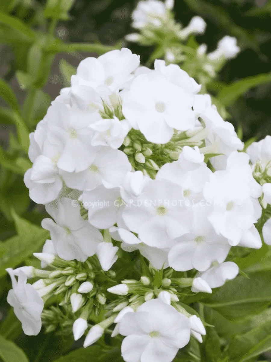 Флокс метельчатый сорта *Ice Cap* пленяет взор своей изысканной красотой и нежностью цветения. Это многолетнее травянистое растение образует пышную кустистую крону высотой около полуметра, украшенную крупными соцветиями-метёлками, состоящими из множества мелких цветков белоснежного оттенка, словно покрытых тонким слоем ледяной глазури. Листья ланцетной формы, тёмно-зелёные, гладкие и блестящие, создают контрастный фон для ярких цветов. Цветёт обильно и продолжительно, начиная с конца июня до середины сентября, наполняя сад ароматом свежести и чистоты. Растение предпочитает солнечные места, хорошо дренированные почвы и умеренный полив, легко адаптируется к различным условиям выращивания, радуя садоводов своим великолепием долгие годы.