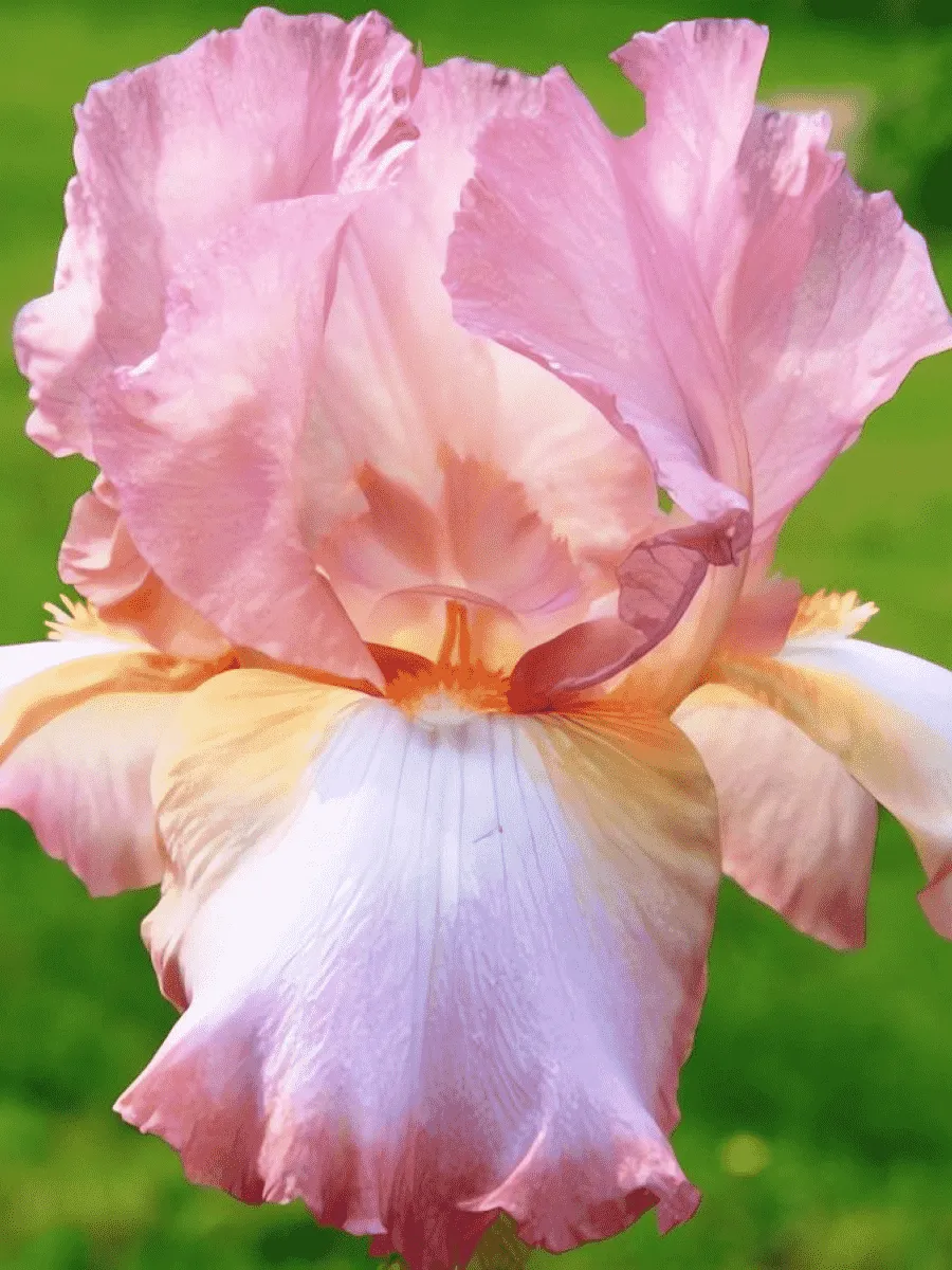 Ирис германский сорта *Pink Horizon* пленяет взор изысканным сочетанием нежности и благородства форм. Его широкие мечевидные листья образуют плотную прикорневую розетку, устремлённую вверх стройной линией зелёного шелка, словно воплощённая гармония природы. Цветоносы достигают высоты до метра, увенчанные крупными цветами диаметром около десяти сантиметров, раскрывающимися во всей красе в конце весны—начале лета. Лепестки цветков нежно-розового оттенка украшены едва заметными прожилками, придающими особую глубину и утончённость общему облику. Верхние лепестки слегка загнуты назад, подчёркивая элегантность формы, тогда как нижние плавно изгибаются вперёд, создавая впечатление лёгкого движения даже в неподвижном воздухе сада. Растение предпочитает солнечные участки с плодородной почвой, хорошо дренированной и умеренно влажной, прекрасно размножается вегетативно, формируя живописные группы, способные стать украшением любого ландшафтного дизайна.