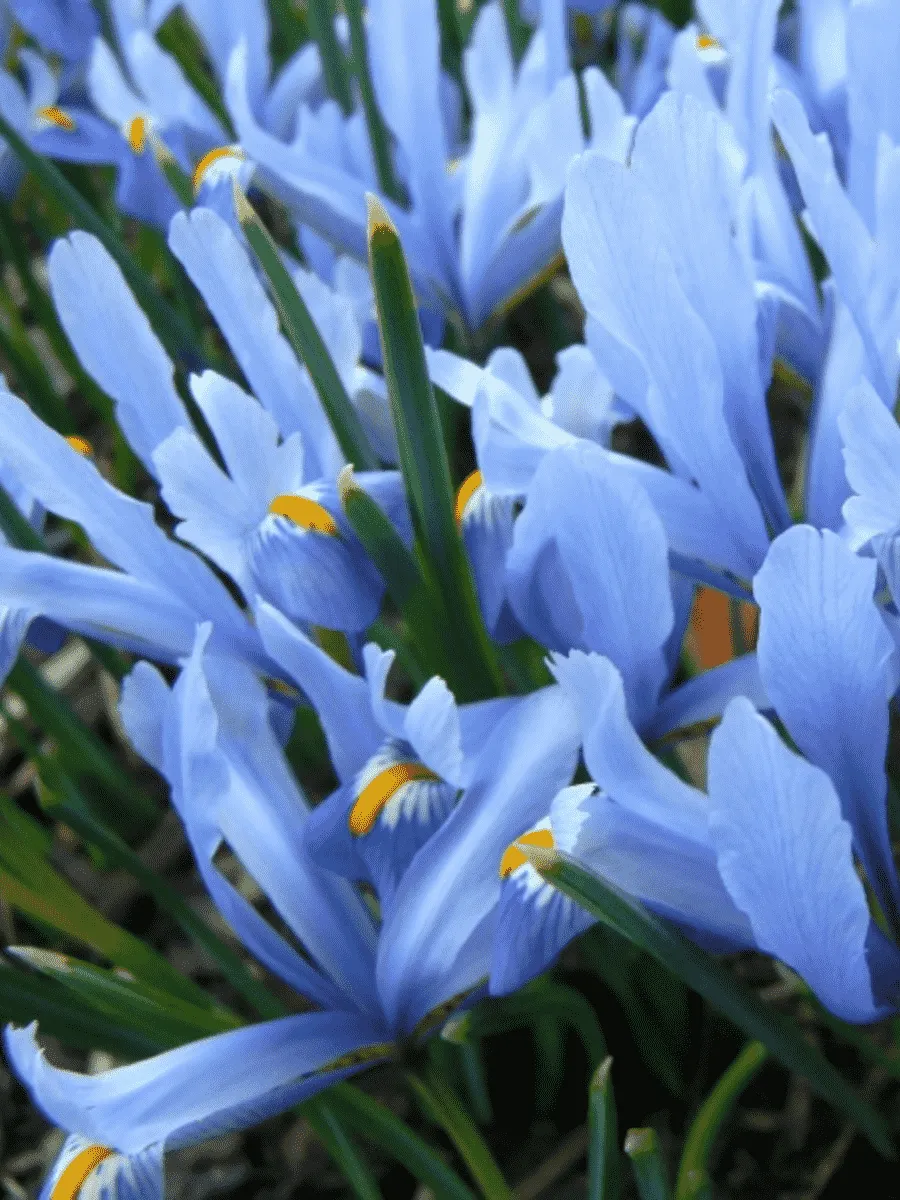 Ирис сетчатый сорта *Cantab* — изысканное растение семейства касатиковых (Iridaceae), покоряющее сердца садоводов нежностью цветения и утончённостью облика. Листья узколинейные, светло-зелёные, слегка волнистые по краям, образуют аккуратную розетку высотой до 15 см, словно миниатюрная зелёная корона, венчающая основание цветка. Цветонос тонкий, стройный, возвышается над листвой на высоту около 20–25 см, увенчанный одним-двумя крупными цветами диаметром до 8 см. Лепестки цветков нежно-голубые, иногда чуть сиреневые, бархатисто-мягкой фактуры, украшены тонкими золотистыми прожилками, придающими особую элегантность и глубину оттенкам. Внутренние доли лепестков округлые, внешние же вытянутые, плавно изгибаются назад, создавая впечатление лёгкого движения даже в неподвижности. Период цветения приходится на раннюю весну, когда первые солнечные лучи едва начинают согревать землю после зимних холодов. Растёт преимущественно на открытых солнечных участках, предпочитая плодородные почвы умеренной влажности. Благодаря своей компактной форме и яркому весеннему цвету, ирис сетчатый *Cantab* идеально подходит для оформления альпийских горок, рокариев и миксбордеров, привнося в садовую композицию нотки свежести и благородства.