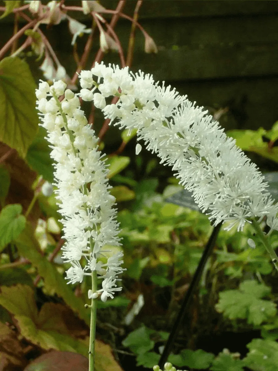 Клопогон японский 'Silver Dance' (Actaea japonica 'Silver Dance') пленяет взор своей изысканной красотой и грациозностью форм. Это многолетнее растение достигает высоты до одного метра, формируя пышную крону из крупных пальчато-рассечённых листьев, словно кружевной веер раскинутых над поверхностью почвы. Листья обладают серебристым оттенком, который особенно ярко проявляется весной и летом, создавая эффект лёгкого мерцания среди зелёного окружения сада. Цветки собраны в длинные кистевидные соцветия, возвышающиеся над листвой подобно свечам, украшенным мелкими белыми цветами, источающими тонкий аромат. Растёт медленно, предпочитая полутень и влажные плодородные почвы, постепенно разрастаясь и превращаясь в живописный акцент ландшафтного дизайна.