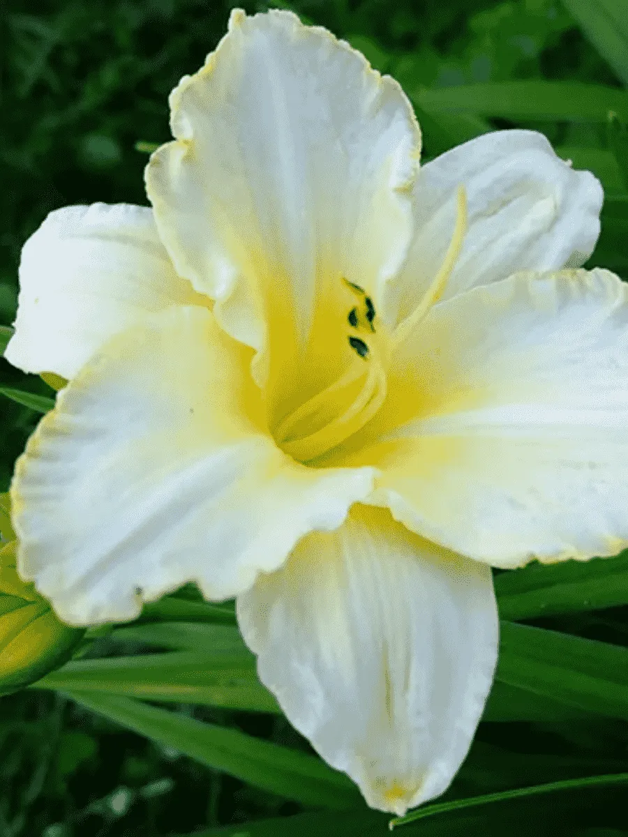 Лилейник *Arctic Snow* пленяет взор своей изысканной простотой и благородством линий. Это многолетнее травянистое растение образует плотную розетку длинных узких листьев насыщенного зелёного цвета, слегка дугообразно изгибающихся от основания и придающих кусту элегантность и воздушность. Цветоносы возвышаются над листвой стройной колонной, увенчанные крупными белыми цветами, словно снежинки, застывшие в воздухе. Лепестки цветка нежны и прозрачны, будто сотканы из тонкой ткани, края лепестков чуть волнистые, создавая впечатление лёгкости и невесомости. Цветение начинается поздней весной и продолжается до середины лета, наполняя сад ароматом свежести и чистоты. Растёт быстро, легко размножается делением куста, прекрасно адаптируется к различным условиям произрастания, предпочитая солнечные места и плодородные почвы. Этот сорт станет украшением любого сада благодаря своему утончённому облику и способности создавать атмосферу спокойствия и гармонии.