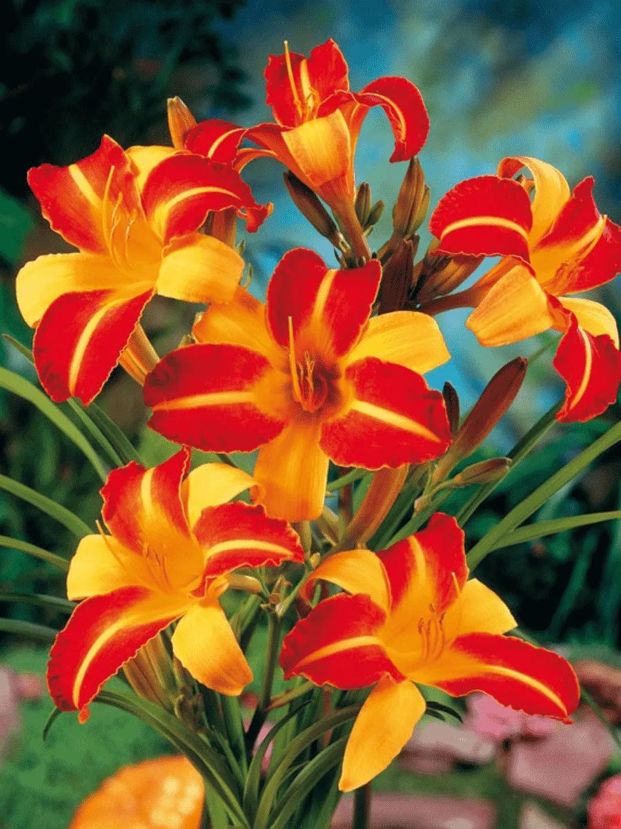 Лилейник двухцветный (Hemerocallis fulva var. kwanso), словно живописная кисть природы, пленяет взор своей изысканной красотой и грациозностью форм. Это многолетнее травянистое растение образует плотную куртину из длинных, узких, слегка дугообразно изгибающихся листьев насыщенного зелёного цвета, придающих растению элегантность и благородство облика. Цветоносы возвышаются над лиственной массой, достигая высоты до метра, увенчанные крупными бутонами, раскрывающимися в роскошные цветки диаметром около десяти сантиметров. Лепестки цветков нежной оранжево-красной окраски украшены контрастным жёлтым горлом, создавая эффектный цветовой переход от светлого центра к тёмному краю лепестков. Каждый цветок живёт всего один день, однако благодаря многочисленным почкам цветение продолжается длительное время, радуя глаз яркими красками с июня по август. Растёт быстро, легко размножается вегетативно, широко распространён в садах и парках Европы и Азии, где ценится за неприхотливость, устойчивость к неблагоприятным условиям среды и способность создавать яркие акценты в ландшафтных композициях.