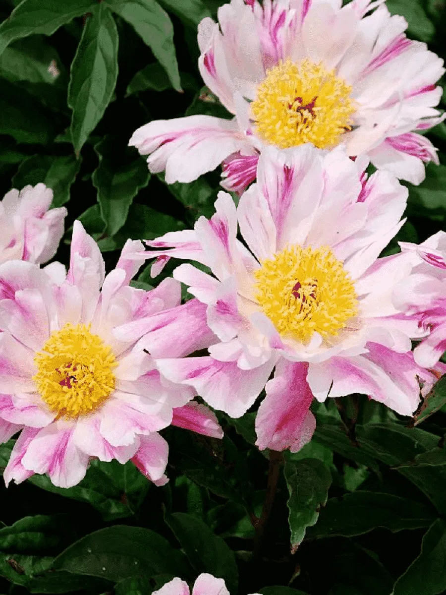 Пион *«Pink Luau»* пленяет взор роскошью своего цветения и утончённостью форм. Высокий куст достигает метра высоты, украшая сад пышной зелёной листвой насыщенного тёмно-зелёного оттенка, слегка блестящей и волнистой по краям. Листья крупные, рассечённые, придают растению благородную декоративность даже вне периода цветения. Бутоны раскрываются крупными цветами диаметром до 18 см, демонстрируя нежнейшие оттенки розового цвета с лёгким кремовым оттенком в центре лепестков. Цветки полумахровые, состоят из множества широких округлых лепестков, расположенных слоями, создавая впечатление изысканной многослойности. Аромат цветков тонкий, едва уловимый, придаёт саду особую атмосферу свежести и гармонии. Растение предпочитает солнечные места, хорошо растёт на плодородных почвах, устойчиво к болезням и неблагоприятным погодным условиям, радуя садоводов своим великолепием долгие годы.