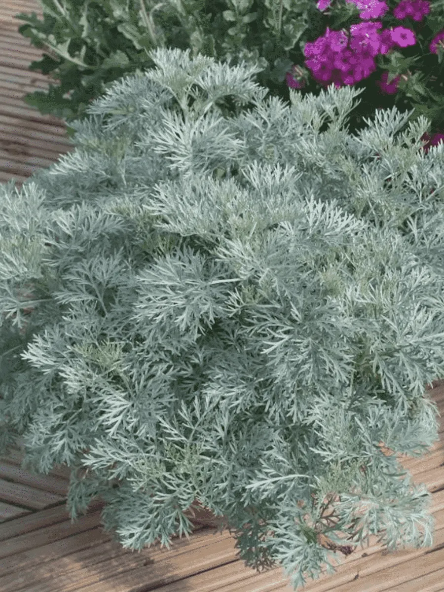Полынь гибридная сорта *Powis Castle* пленяет взор своей изысканной красотой и благородством облика. Это компактный полукустарник высотой до метра, обладающий густой серебристо-серой листвой, словно покрытый тонким слоем драгоценной пыли. Листья перисто-рассечённые, узкие, тонкие, слегка волнистые по краям, создают впечатление воздушной кружевной ткани, переливающейся нежнейшими оттенками серого цвета. Цветёт растение мелкими жёлтыми корзинками, собранными в рыхлые метельчатые соцветия, украшая собой садовые композиции с конца лета до глубокой осени. Обладает высокой декоративностью благодаря длительному сохранению окраски даже после окончания цветения. Растение неприхотливо, предпочитает солнечные места и хорошо дренированные почвы, легко переносит засуху и морозы, становясь украшением каменистых садов, рокариев и бордюров.