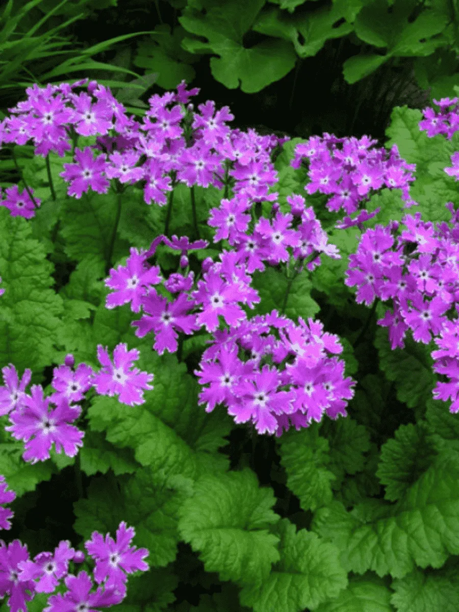 Примула Зибольда (Primula sieboldii), известная также как японская примула, пленяет взор нежностью своего облика и утончённостью форм. Это многолетнее травянистое растение образует компактную розетку крупных сердцевидных листьев, покрытых бархатистым пушком, словно облачённых в мягкую мантию природы. Листья тёмно-зелёные, слегка волнистые по краям, создают живописный фон для очаровательных цветков, собранных в рыхлые зонтики над поверхностью листвы. Цветки разнообразной окраски от нежно-розового до насыщенно-фиолетового оттенка венчают тонкие стебли, возвышаясь над листьями подобно миниатюрным фонарикам, освещающим весенний сад. Высота растений варьируется от 15 до 30 см, позволяя им гармонично вписываться в альпийские горки, рокарии и тенистые уголки сада. Родина этой прелестницы — Япония, где она предпочитает влажные лесные почвы и полутень, создавая атмосферу умиротворённости и гармонии.
