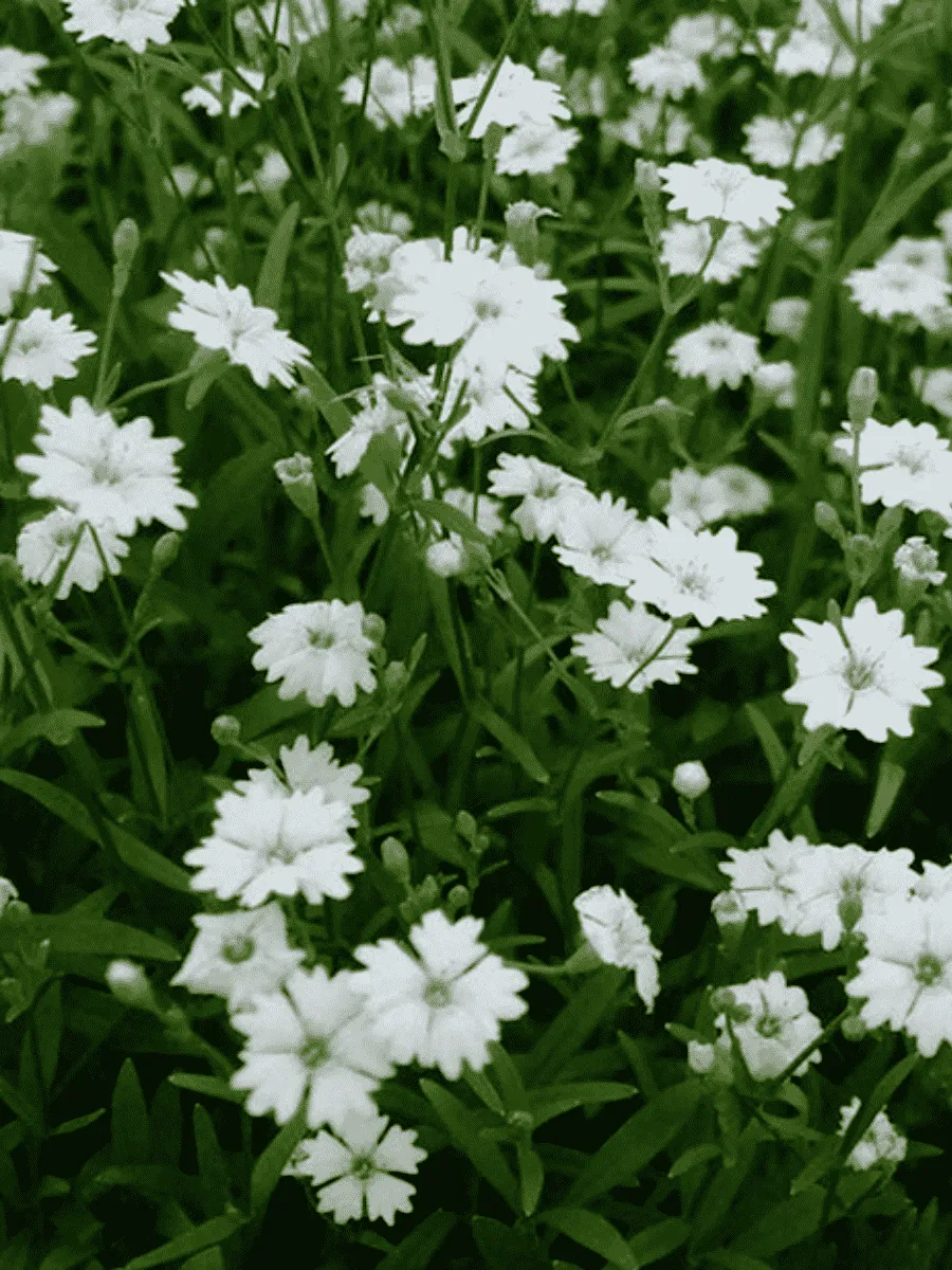 Смолёвка приальпийская *Starry Dreams* пленяет взор нежностью своего облика и утончённостью форм. Это многолетнее травянистое растение высотой до полуметра украшено узкими линейно-ланцетными листьями насыщенного зелёного цвета, слегка опушёнными серебристым пушком, придающим листве особую мягкость и бархатистость. Цветки собраны в рыхлые кистевидные соцветия, возвышающиеся над кустиком подобно звёздам, рассыпанным среди зелени. Лепестки цветков нежно-розовые, иногда переходящие в белые оттенки, имеют лёгкую гофрированную структуру, создавая впечатление воздушности и невесомости. Бутоны раскрываются постепенно, наполняя пространство тонким ароматом, привлекающим насекомых-опылителей. Растёт смолёвка преимущественно на каменистых склонах, лугах и альпийских лужайках, предпочитая солнечные места с хорошо дренированными почвами. Её присутствие оживляет горные ландшафты, добавляя живописной растительности очарование и романтизм.