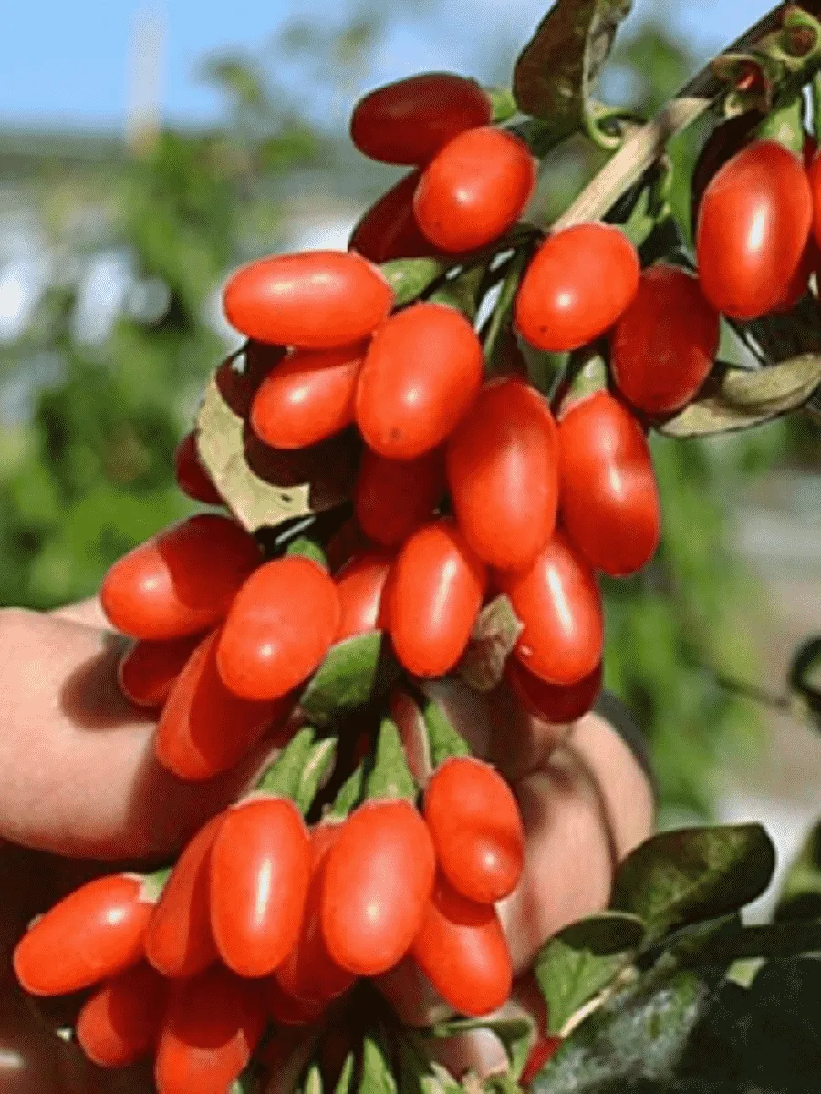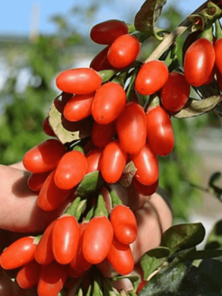 Ягоды красного цвета, длиной 1,5-2 см и шириной около 1 см