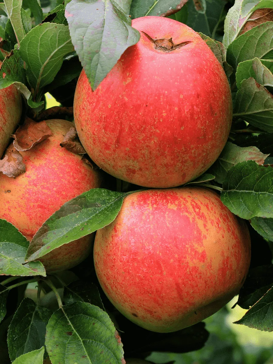 Апорт кроваво-красный — величественное дерево семейства Розовые (Rosaceae), поражающее своей мощью и благородством облика. Стройный ствол покрыт гладкой серовато-коричневой корой, ветви раскидистые, густые, устремлённые вверх, создавая пышную округлую крону. Листья крупные, овально-ланцетной формы, слегка волнистые по краям, насыщенно-зелёные летом, осенью окрашиваются в яркие багряные тона, словно пламя заката. Цветки распускаются крупными белыми или нежно-розовыми бутонами ранней весной, источают тонкий аромат, привлекающий насекомых-опылителей. Дерево предпочитает плодородные почвы, хорошо освещённые участки, устойчиво к засухе и морозам, широко распространено в садах и парках средней полосы России, украшая собой ландшафты своим живописным видом и великолепием цветения.
