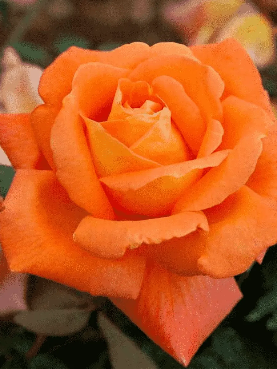 Роза чайно-гибридная *Louis de Funes* пленяет взор роскошью своего цветения и благородством форм. Куст компактный, высотой около метра, густо облиственный темно-зелеными глянцевыми листьями овальной формы с четким жилкованием и слегка волнистым краем. Цветки крупные, диаметром до 15 см, одиночные или собраны в небольшие соцветия, обладают изысканным ароматом и насыщенной оранжево-красной окраской с золотистым отливом, постепенно переходящей в бархатистый оттенок ближе к центру лепестков. Бутоны элегантно вытянутые, чашевидные, раскрываются медленно, демонстрируя многослойную структуру лепестков, создавая впечатление пышности и утонченности. Период цветения продолжительный, начинается в июне и продолжается до поздней осени, радуя глаз яркими красками даже в пасмурные дни. Растение предпочитает солнечные места, плодородные почвы и регулярный полив, устойчиво к болезням и зимостойко в условиях умеренного климата.