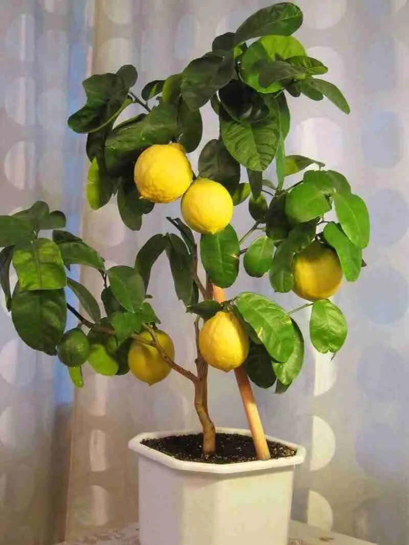 Лимон домашний (*Lemon*) — вечнозелёное растение семейства рутовых (Rutaceae), обладающее изысканным обликом и утончённым ароматом. Это компактное деревце высотой от одного до трёх метров, покрытое густой кроной из блестящих кожистых листьев насыщённого тёмно-зелёного цвета, слегка волнистых по краям и овально-заострённых на концах. Цветки лимона белые или кремовые, ароматные, собраны в небольшие кисти либо одиночные, распускаются весной и летом, украшая собой интерьер нежностью лепестков и тонким благоуханием цитруса. Растёт лимон медленно, предпочитая светлые места с умеренным поливом и регулярной подкормкой, легко приспосабливаясь к домашним условиям благодаря своей неприхотливости и выносливости.